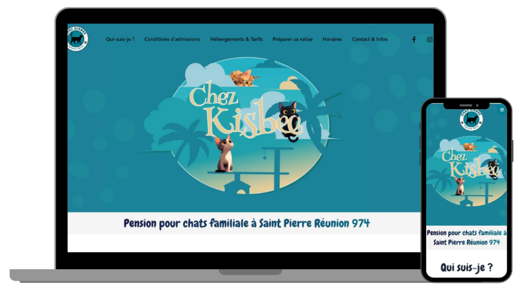 Site One Page pour la pension pour chats familiale Chez Kisbee à Saint-Pierre 974.