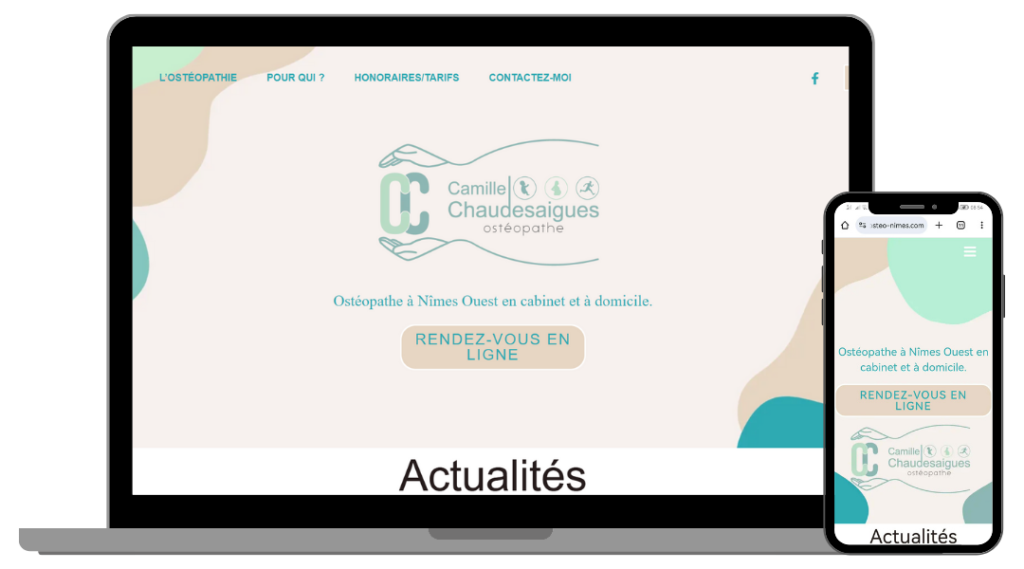 Site One Page pour l’ostéopathe Camille Chaudesaigues à Nîmes.