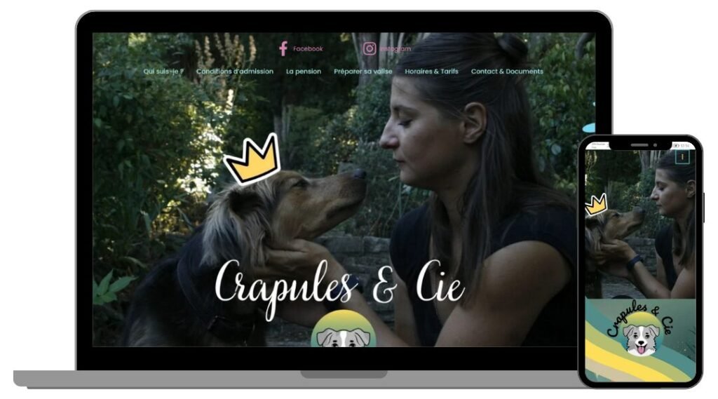 Site One Page pour la pension canine familiale Crapules & Cie situé au Tampon 974.